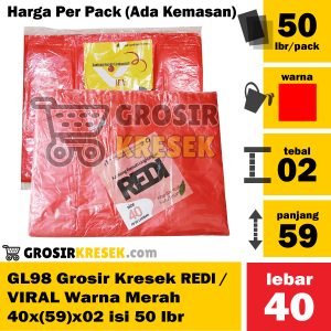 GL98 Grosir Kantong Kresek Merk VIRAL/REDI Merah 40x59x02 isi 50 lbr Murah