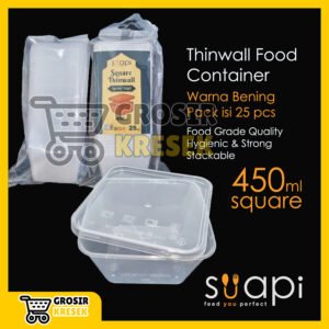 T198 Food Container Suapi 450 ml Tepak Snack Transparan (isi 25) / Thinwall Square – Grosir Plastik