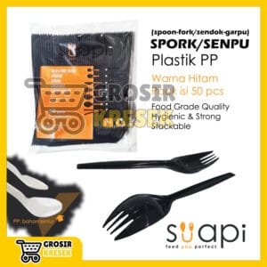 T201 Suapi PP Spork Hitam (SenPu Sendok-Garpu / Spoon-Fork) isi 50 pcs