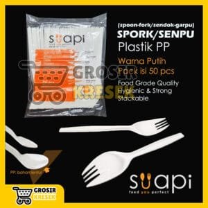 T202 Suapi PP Spork Putih (SenPu Sendok-Garpu / Spoon-Fork) isi 50 pcs