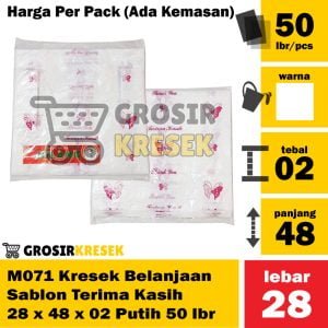 M071 Kantong Kresek Belanjaan Sablon Terima Kasih Thankyou JULANG 28x48x02 Putih isi 50 Lembar