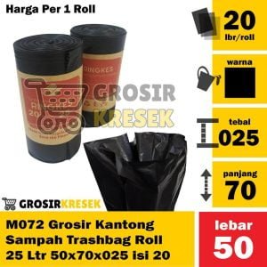 M072 Trashbag Hitam Roll 25 Liter 50x70x025 isi 20 lbr Kantong Plastik Tempat Sampah Murah