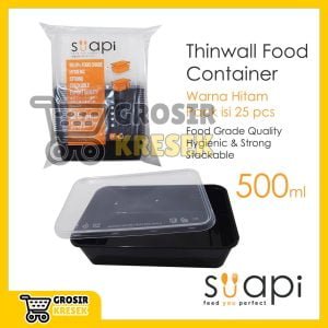 T131 Food Container SUAPI Hitam 500 ml isi 25 pcs Thinwall Wadah Tepak