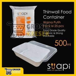 T132 Food Container SUAPI Putih 500 ml isi 25 pcs Thinwall Wadah Tepak