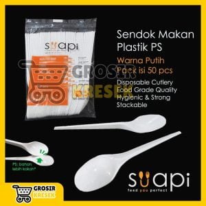 T095 Sendok Makan Plastik PS SUAPI Warna Putih 50pcs Food Grade Grosir