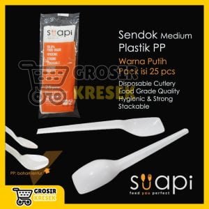 T096 Sendok Makan Medium PP SUAPI Warna Putih 25pcs Plastik Food Grade