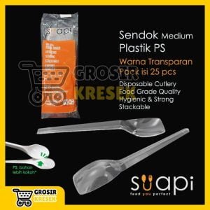 T097 Sendok Makan Medium PS SUAPI Transparan 25pcs Plastik Food Grade
