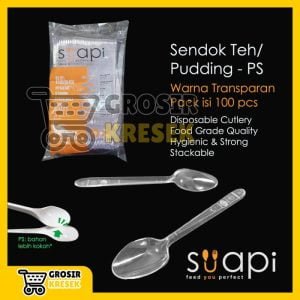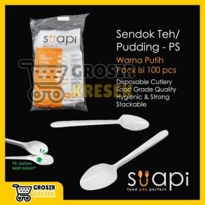 T099 Sendok Teh Pudding PS SUAPI Putih isi 100 pcs Plastik Food Grade