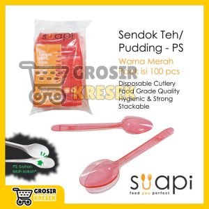 T100 Sendok Teh Pudding PS SUAPI Warna Merah 100pcs Plastik Food Grade – Grosir GK Food Packaging