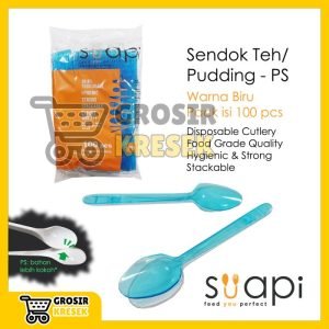 T101 Sendok Teh Pudding PS SUAPI Biru 100pcs Plastik Food Grade Grosir – Grosir GK Food Packaging