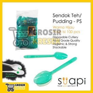 T102 Sendok Teh Pudding PS SUAPI Hijau 100pc Plastik Food Grade Grosir – Grosir GK Food Packaging