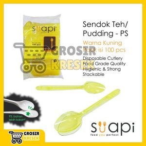 T104 Sendok Teh Pudding PS SUAPI Kuning 100 Plastik Food Grade Grosir – Grosir GK Food Packaging