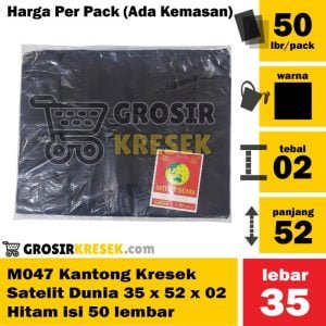 M047 Kresek Satelit Dunia 35 x 52 x 02 Hitam isi 50 lbr Kantong Grosir