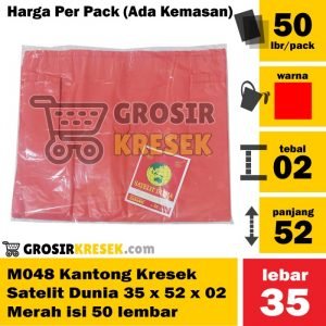 M048 Kresek Satelit Dunia 35 x 52 x 02 Merah isi 50 lbr Kantong Grosir
