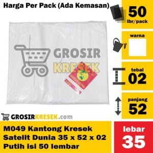 M049 Kresek Satelit Dunia 35 x 52 x 02 Putih isi 50 lbr Kantong Grosir