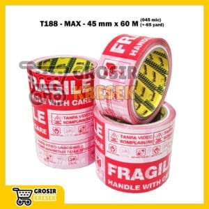 T188 Lakban Fragile Unboxing Plester Merah Putih MAX 45mm 60m (65 yard) (045 micron – core green)