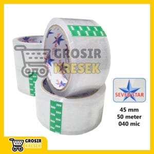 T189 Lakban Bening SEVEN STAR 45mm 50 meter 040mic – Plester Clear Tape Transparan