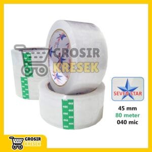 T192 Lakban Bening SEVEN STAR 45mm 80 meter 040mic – Plester Clear Tape Transparan