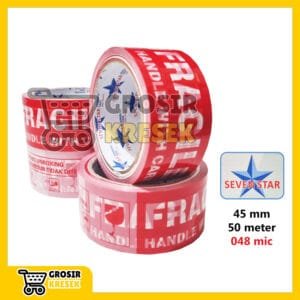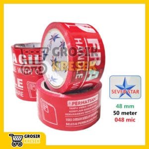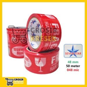 T193 Lakban Fragile Merah SEVEN STAR 48mm 50 meter 048mic – Tape Plester Motif Jangan Dibanting Handle With Care