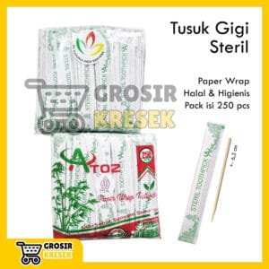 T197 Tusuk Gigi Steril merk Atoz Pack isi 250 pcs Halal Paper Wrap Grosir Wood Toothpick Kayu Higienis