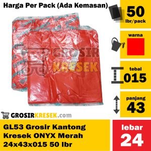 GL53 Grosir Kantong Kresek Merk ONYX Merah 24 x 43 x 015 isi 50 lbrRp7.250