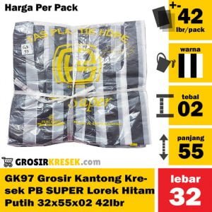 GK97 Grosir Kantong Kresek SUPER Lorek PB Hitam Putih 32x55x02 42 lbr