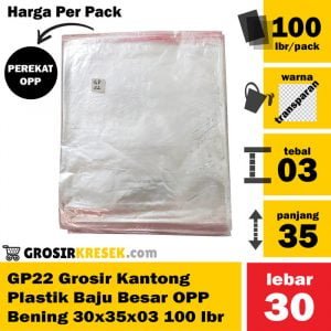 GP22 Grosir Kantong Plastik Baju Besar Bening OPP 30x35x03 isi 100 lbr