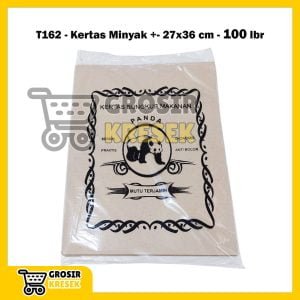 T162 Kertas Minyak Panda Hitam isi 100 lbr – Coklat Persegi Panjang +-27×36 cm – Bungkus Nasi Food Wrapper Murah