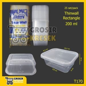 T170 Thin Wall Victory Rectangle ukuran 200 ml – Food Container Kotak Nasi Thinwall isi 25 pcs