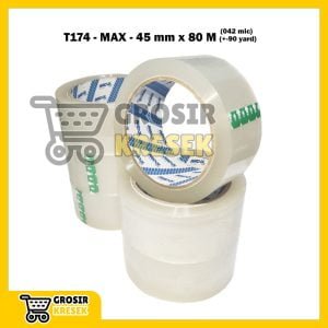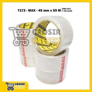 T172 Lakban Bening MAX 45 mm x 60 yard (55 meter) 040 micron – Grosir Isolasi Plester Transparan Core Black