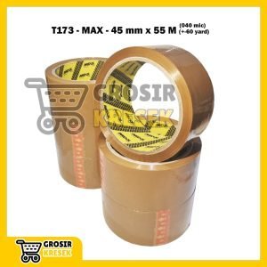 T173 Lakban Coklat MAX 45 mm x 60 yard (55 meter) 040 micron – Grosir Isolasi Plester Cokelat Core Black
