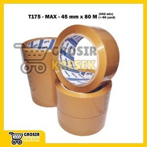T175 Lakban Coklat MAX 45 mm x 90 yard (80 meter) 042 micron – Grosir Isolasi Plester Cokelat Core Blue