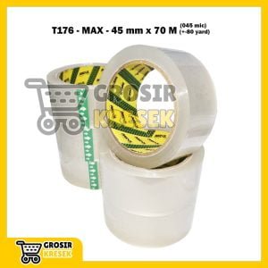T176 Lakban Bening MAX 45 mm x 80 yard (70 meter) 045 micron – Grosir Isolasi Plester Transparan Core Green