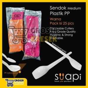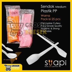 T180 Sendok Makan Medium PP SUAPI Warna Pink 25 pcs Plastik Food Grade