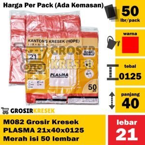 M082 Grosir Kantong Kresek PLASMA 21 x 40 x 0125 Merah isi 50 lembar