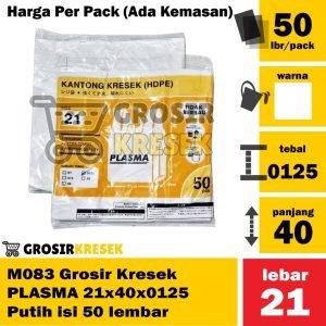 M083 Grosir Kantong Kresek PLASMA 21 x 40 x 0125 Putih isi 50 lembar