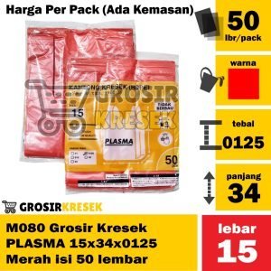 M080 Grosir Kantong Kresek PLASMA 15 x 34 x 0125 Merah isi 50 lembar