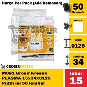 M081 Grosir Kantong Kresek PLASMA 15 x 34 x 0125 Putih isi 50 lembar