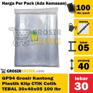 GP94 Grosir Kantong Plastik Klip Cetik CTIK TEBAL 30x40x05 isi 100 lbr