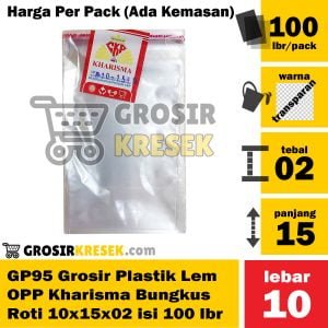 GP95 Grosir Plastik OPP Kharisma 10x15x02 Kantong Roti Bening 100 lbr