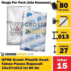 GP98 Kantong Plastik Kuah Tahan Panas 15x27x013 Rajawali +-80 lbr