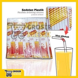 [Grosir] T217 Sedotan Plastik Hello Putih 22 cm d.5mm Pack Besar isi 240 biji (16 x 15 biji) bisa ditekuk Straw Minuman Es Teh Higenis